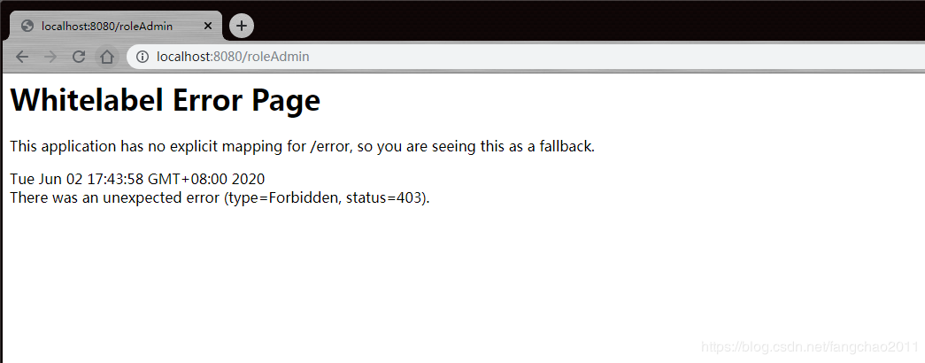 测试roleAdmin(登录admin 123456成功,登录jack fang访问则失败)