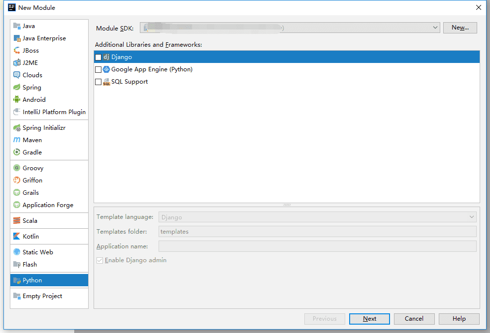 起初安装完毕,python--》Module SDK 是 显示 <NO SDK>, 这个对于我刚接触的来说,的确有点阻碍。 网上教程好象都是下载好插件后,直接就有了SDK。我也没整明白