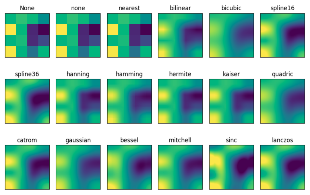 interprolation参数控制热图的显示形式,是一个较难理解的参数,同样的数据,不同取值对应的热图形式如下