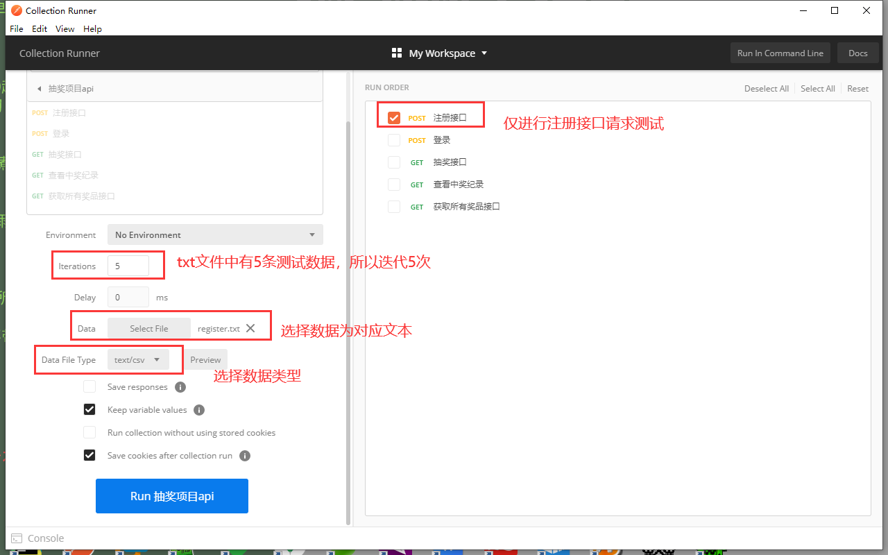 1、根据接口文档,设计测试数据(本例中仅简单设计,为了验证postman参数化功能而已):