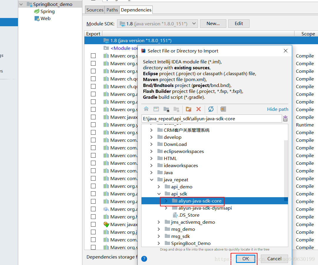 第二步找到自己要导入的项目,然后点击ok