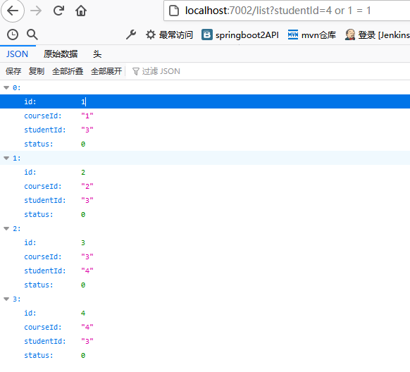 请求接口的时候将studendId 设置为4 or 1 = 1,这样这条sql的where条件就恒真了。sql也就等同于下面这样
