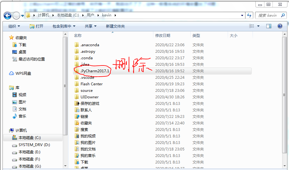 找到.PyCharm2019.1文件夹(你所下载的版本) 删除即可