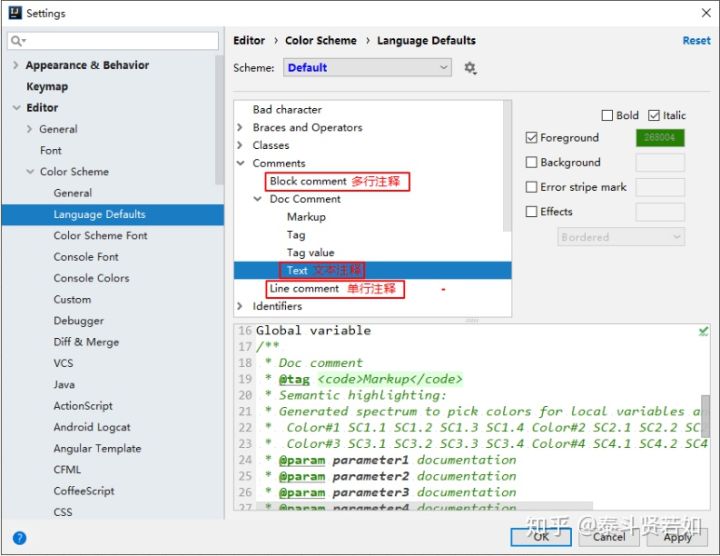Doc Comment ?> Text:修改文档注释的字体颜色Block comment:修改多行注释的字体颜色Line comment:修改当行注释的字体颜色设置项目文件编码