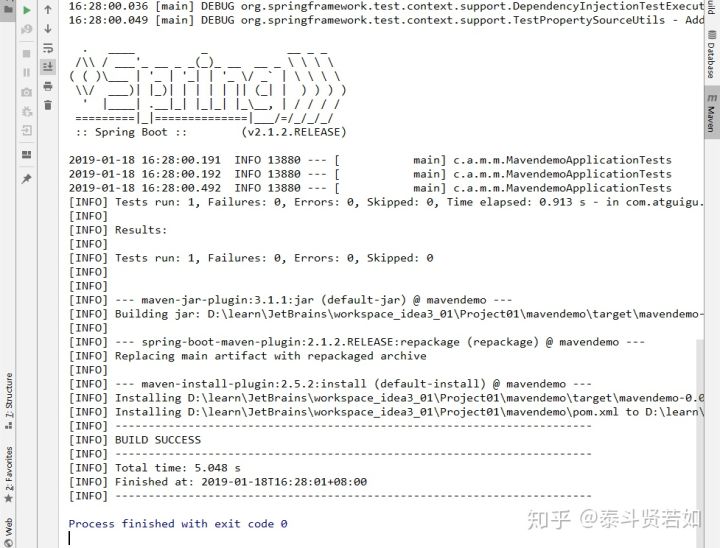 创建完成以后,可以在 IDEA 右边看到创建的 Module。如果没有,可以刷新一下。目录下也会有对应的生命周期。其中常用的是:clean、compile、package、install。比如这里install,如果其他项目需要将这里的模块作为依赖使用,那就可以install。安装到本地仓库的位置。