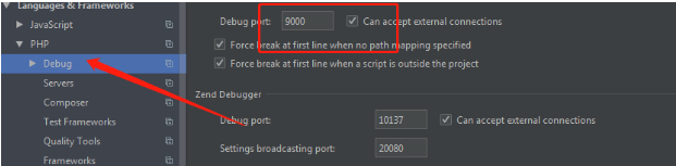 ->这里的debug port要和php.ini里面的 xdebug.remote_port相一致!默认是9000,如果9000端口被占用的话,可以改成其他 端口。