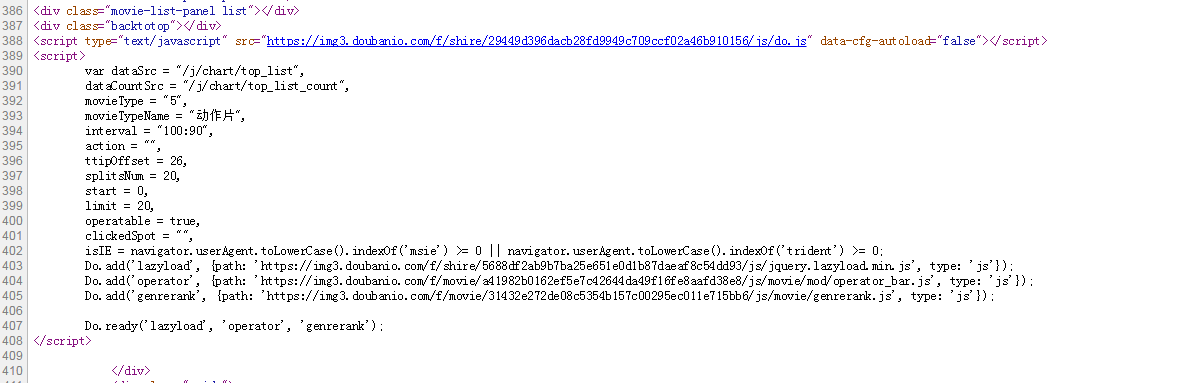 给出一个网页:豆瓣电影排行榜,其中的所有电影信息都是动态加载的。我们无法直接从页面中获得每个电影的信息。