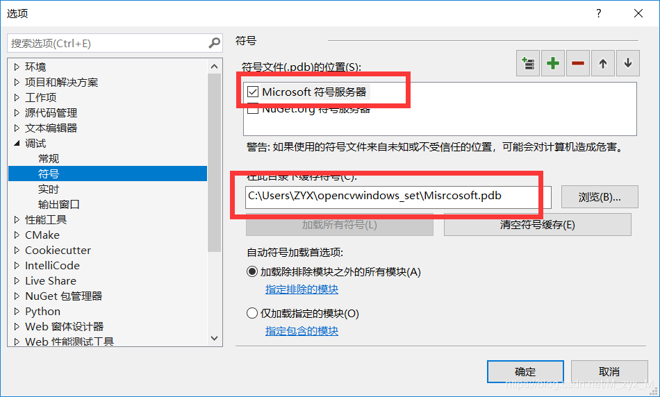 在符号中,勾选以下项目,并新建一个文件夹,命名为Misrcosoft.pdb