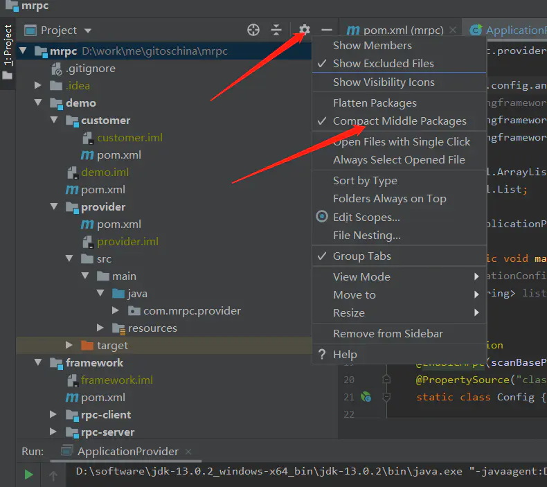 点击它后就能让项目目录以单个目录的形式呈现,不会聚合如下