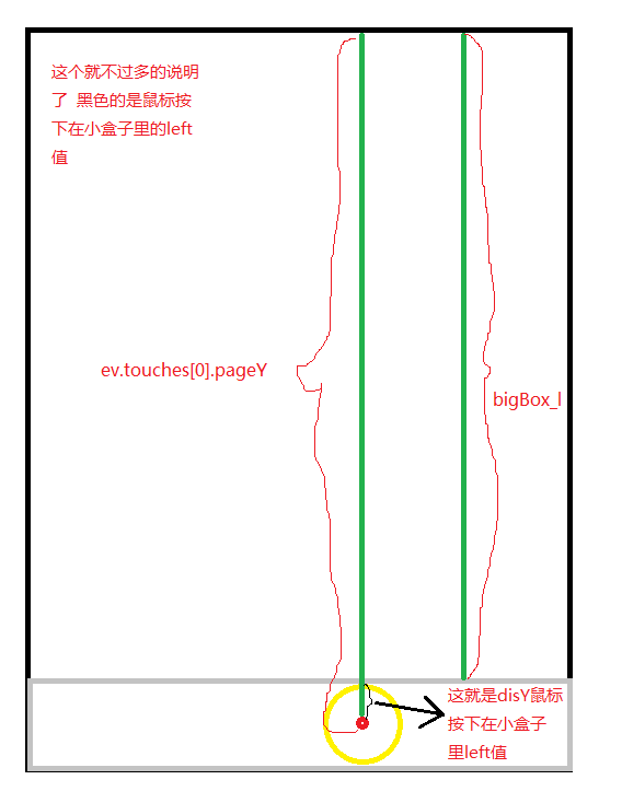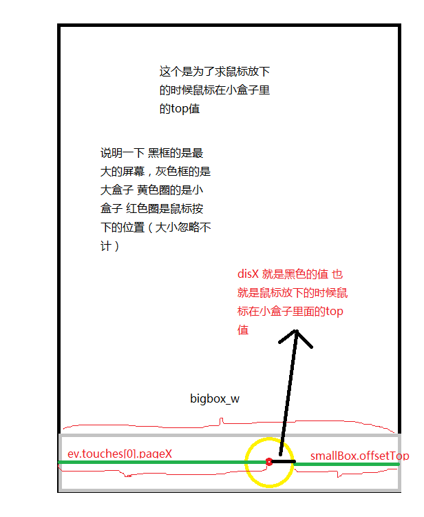 disX = bigbox_w - ev.touches[0].pageX - smallBox.offsetTop; disY = ev.touches[0].pageY - bigBox_l;
