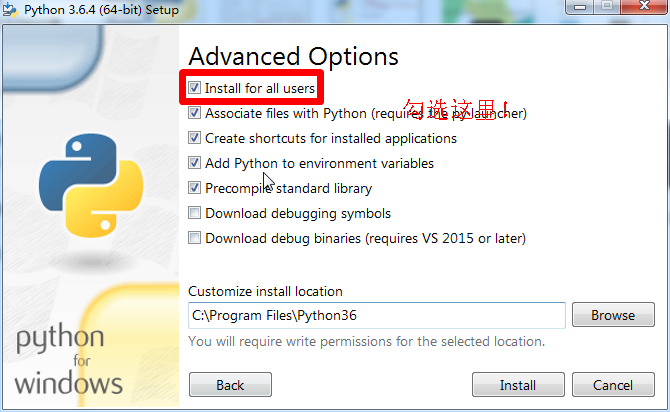 step 1:下载完成后就可以安装了,基本傻瓜式安装,不过要强调几点,如下图(python3.6已经可以自动添加环境变量