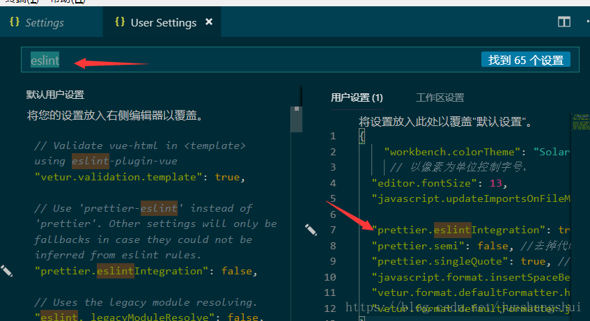 装完后重启VSCode,然打开设置,搜索eslint,接首在右侧用户配置添加相关配置