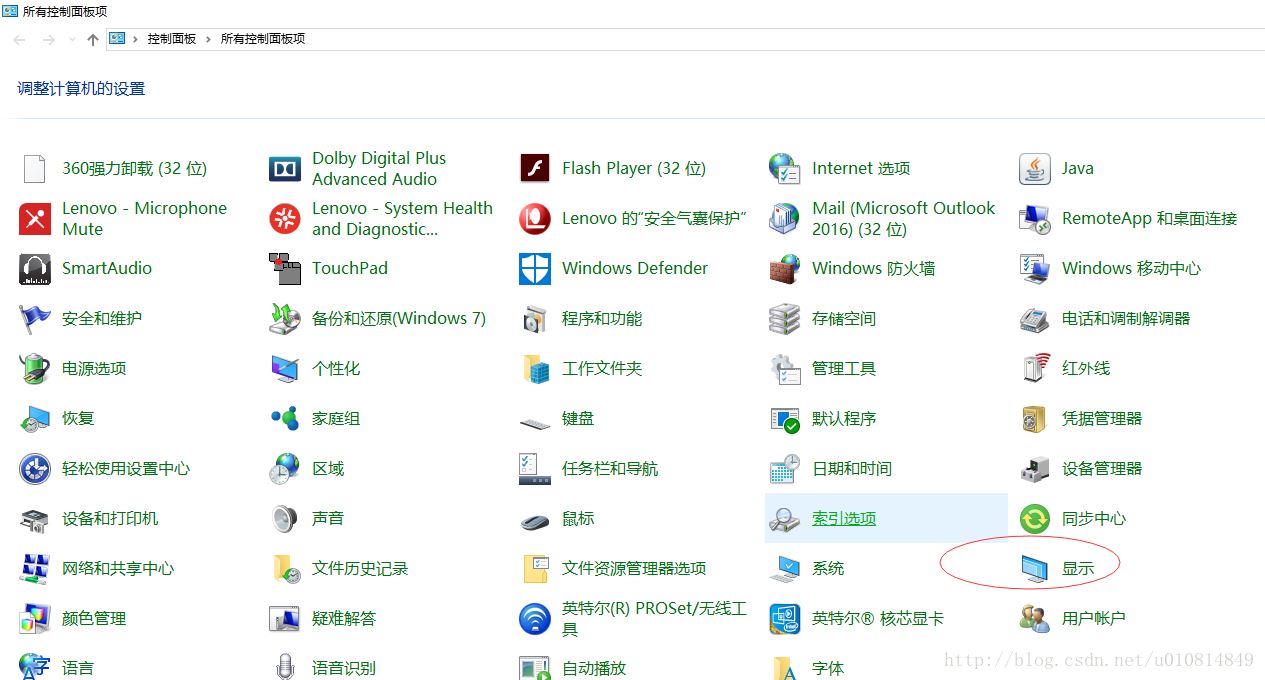 打开“控制面板”,找到“显示”