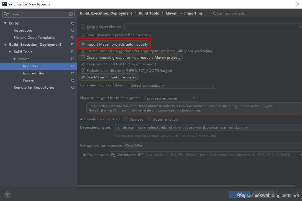 Settings -> Build,Execution,Deployment -> Build Tools -> Maven -> Importing,如下图