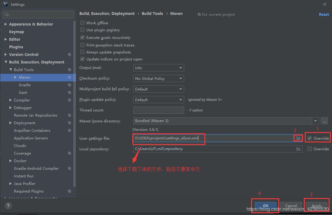 若第二种方法还不能解决项目的依赖导入问题,则需要使用国内的Maven类库,IDEA的Maven类库默认都是使用国外的,一些地区由于墙的原因加载会很慢或者加载不了,此时可以导入阿里云的 Maven 类库(一个settings_aliyun.xml文件)来使用,我就是用这个方法才解决的😂😂