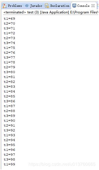 那么如果要实现三个线程轮流打印1-100的数字呢?是不是也可以用上面的方法实现呢?代码如下