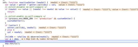 这里可以明显看到也是 id8dep 正准备遍历 subs 通知 Watcher 来更新,也能看到 newValvalue