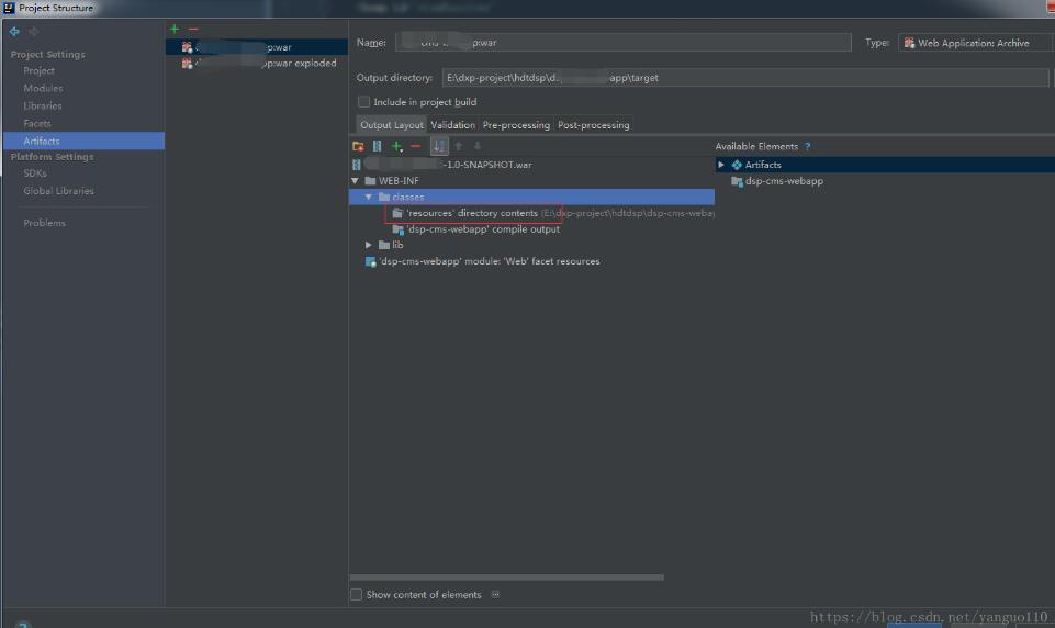1 需要在project structure中的Artifacts下的项目classes文件夹下添加Directory Content,地址指向resource文件夹。