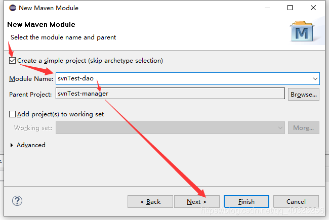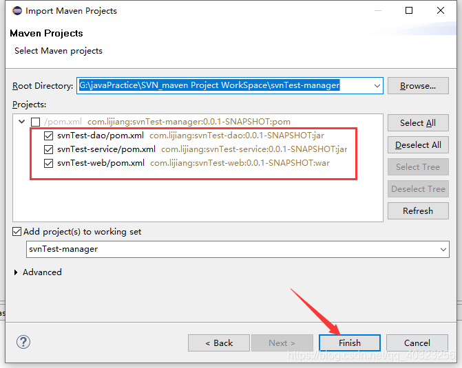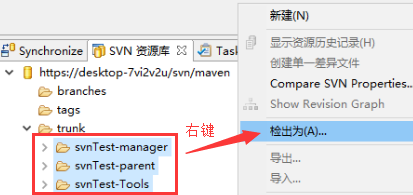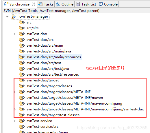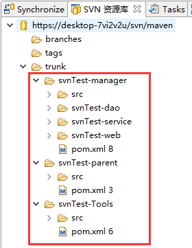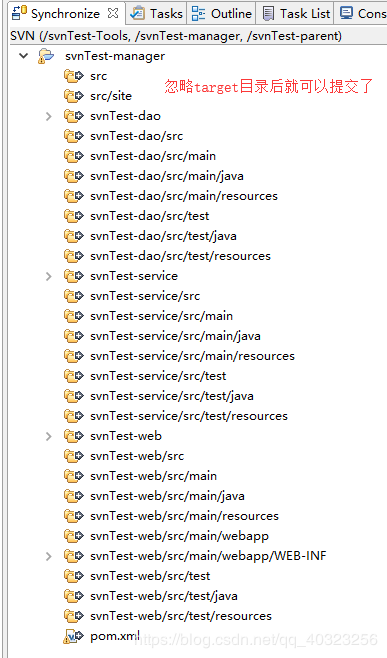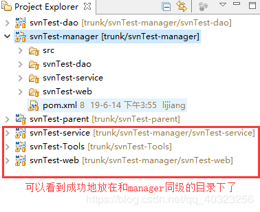 但是我们如何将svnTest-dao,svnTest-service,svnTest-web的目录放在和svnTest-manager同级的目录呢?