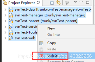 8.右键【svnTest-parent项目】-【team】-【share project...】-【svn】