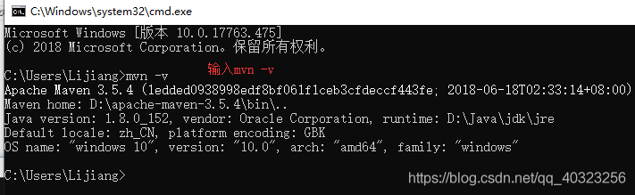 输入mvn -v,如果出现下面这些信息,就说明maven安装成功,环境变量设置成功。