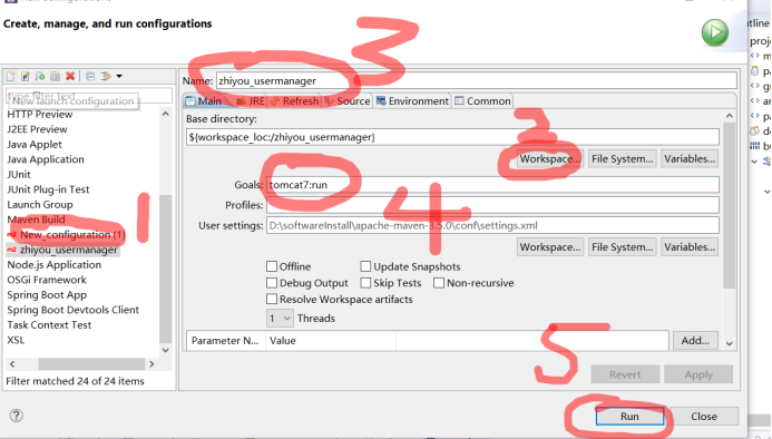 子工程邮件run as configurations ,点击左边的Maven Build新增配置