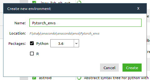 环境名字你可以自己命名,但是尽量写自己能看懂的…由于我已经创建了一个叫pytorch的环境,为了演示,我这里创建一个叫Pytorch_envs的环境。