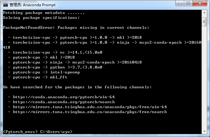 使用anaconda安装pytorch过程中出现的问题