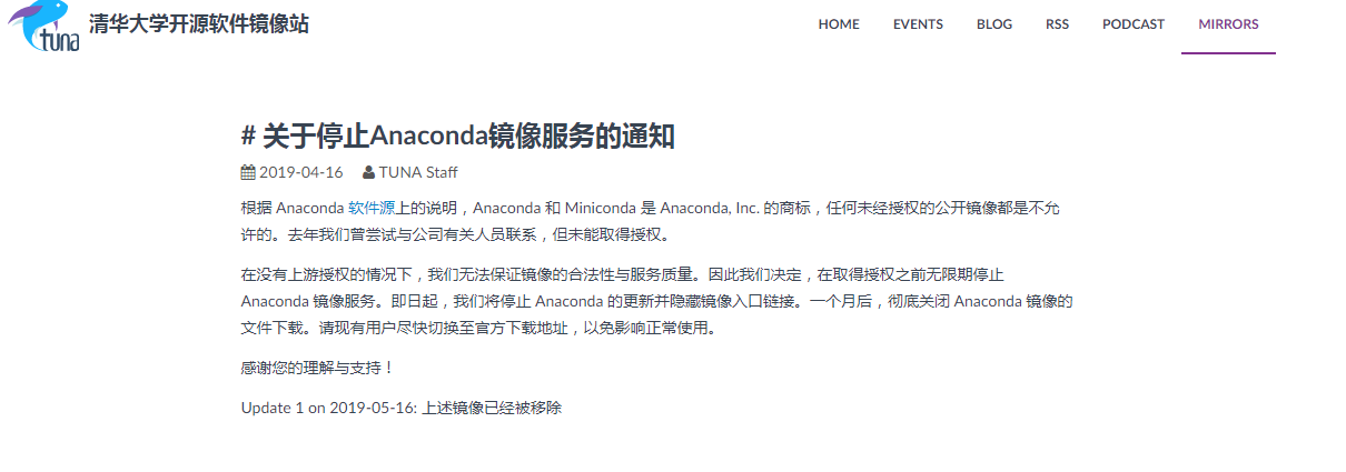 上面下载失败,看了网上的一些资料,说是anaconda的清华镜像不能用了。关于停止Anaconda镜像服务的通知