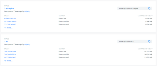 不少Docker官方镜像都有Alpine版本,比如PHP: