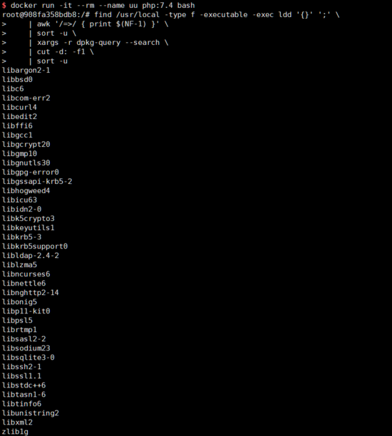 但多阶段编译对于动态链接库的依赖仍然有上述的问题,如果我们拷贝编译成果时只拷贝了可执行文件,在新环境下运行仍然会出现找不到共享链接库的错误。所以个人觉得,多段式编译仅适合于Java、golang等能够跨平台或静态编译的语言,对于C、Python这些依赖较多的项目仍然不友好。