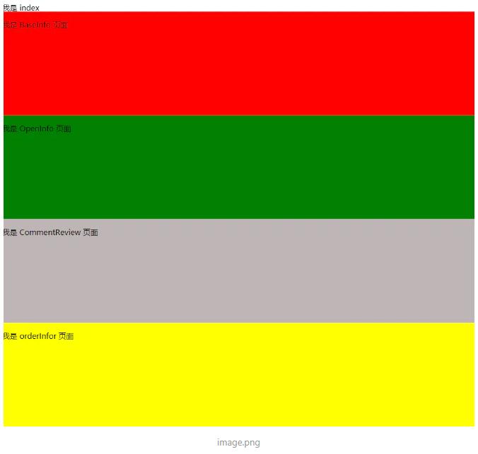 // 其他页面也一样,只有背景色与页面的展示名不同,这就不一一介绍了
