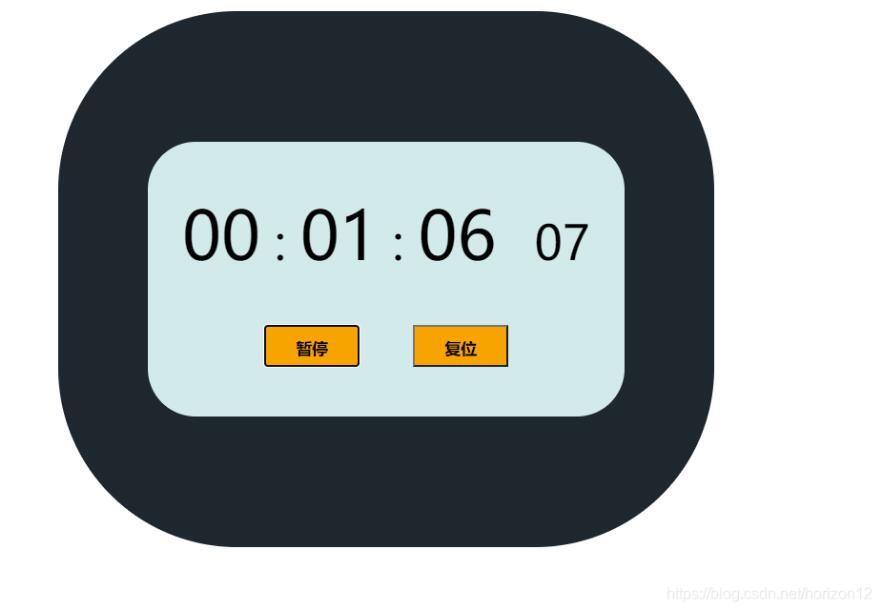 页面的主体结构主要包括四个span,包含四个秒表上显示的时间;以及两个按钮:“开始/暂停”与“复位”按钮。