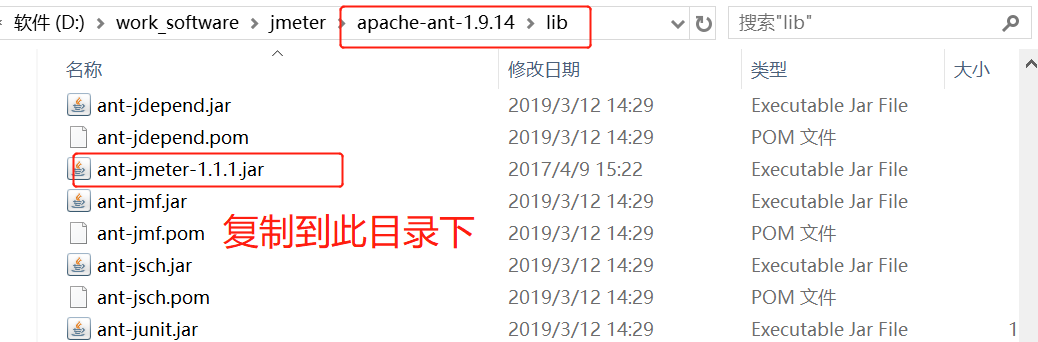 1、将 Jmeter 下 extras 目录中 ant-jmeter-1.1.1.jar 包拷贝至 ant 安装目录下的lib目录中,否则会报错 ant-jmeter-1.1.1 不存在