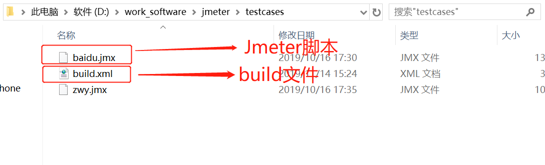 3、testcases 创建 build.xml 文件(从 Jmeter 下的 extras 中将 build.xml 复制到该目录下),所有的 Jmeter 脚本文件都放在此目录下,build.xml 文件因为 ant 编译时需要此文件
