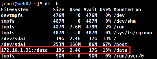 接上篇,创建web02服务器,将web01、web02服务器的/data目录挂载到nfs01服务器的共享目录/data上,并以不同方式实现开机自启动。