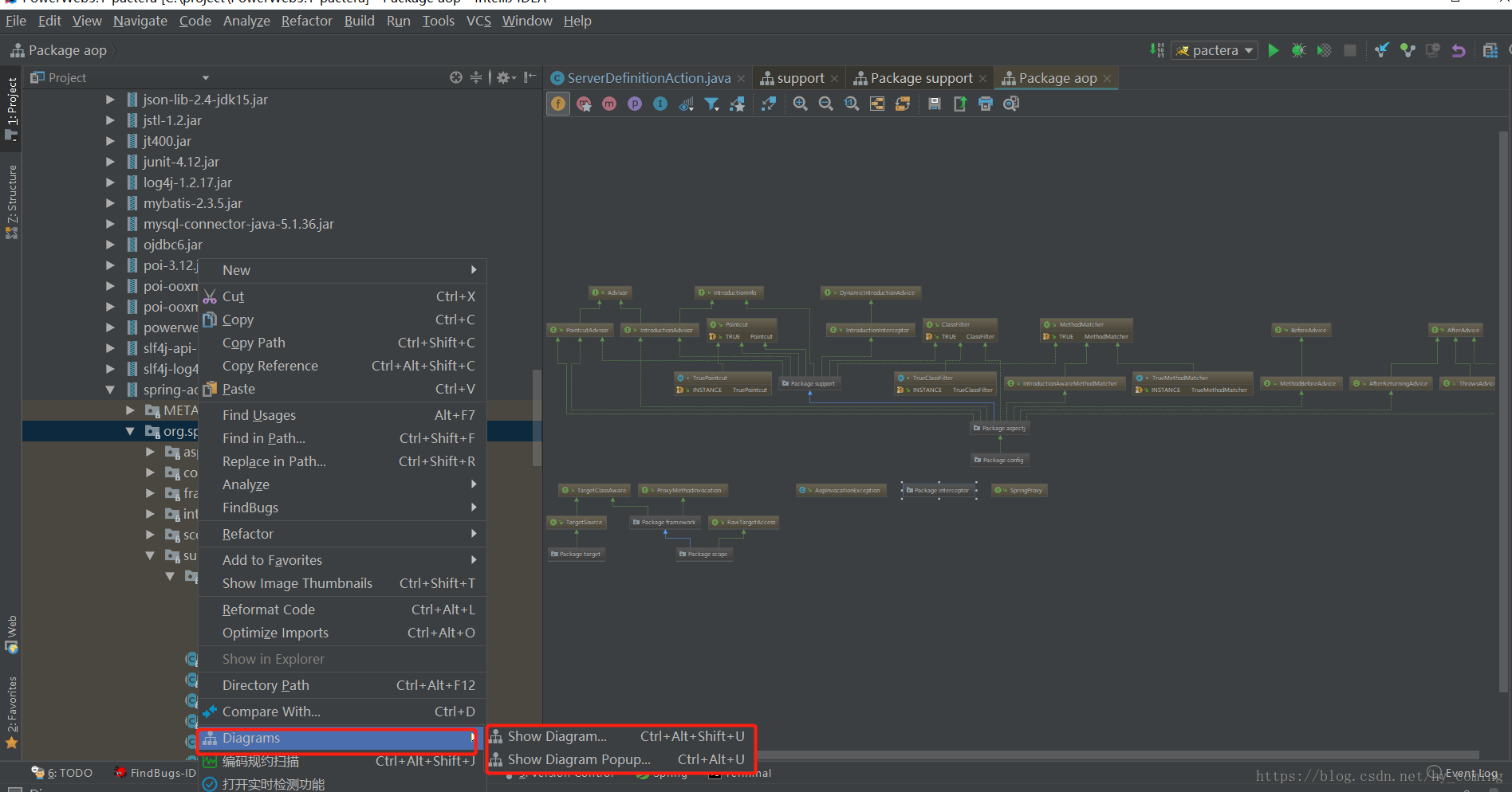 最近在开发的过程当中,对于已有的代码,想将相关类绘制成UML类图,虽然现在有很多UML类图的优秀软件,比如ProcessOn(可视化编辑)、draw.io(可视化编辑)、PlantUML(代码生成),其实看到这里我就想IDEA中有没有像PlantUML一样的自动生成的插件,本着怀疑的态度百度了一下,果然IDEA还是很强大的,这个插件都是自带的,接下稍微讲述如何利用IDEA生成UML类图的教程。