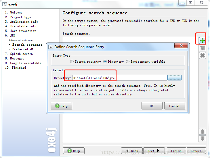 11.在 search sequence 弹出的页面里 点击 绿色+ 号 ,配置jre运行环境。小编偷懒直接用的是jdk里带的。别骂我。。。next