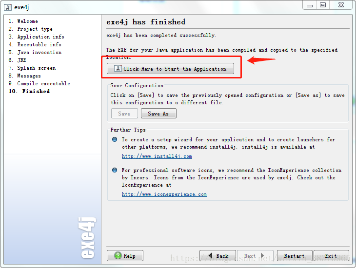 14.如图不需操作,直接next,成功后,至此jar 转 exe 到此结束,在之前添加的目录即可找到。