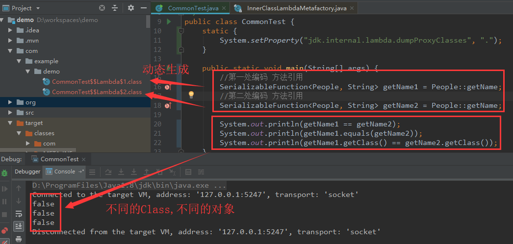 代码中SerializableFunction,Function只是一个接口,但是其在最后必定也是一个实现类的实例对象,而方法引用其实是在运行时动态创建的,当代码执行到方法引用时,如People::getName,最后会经过