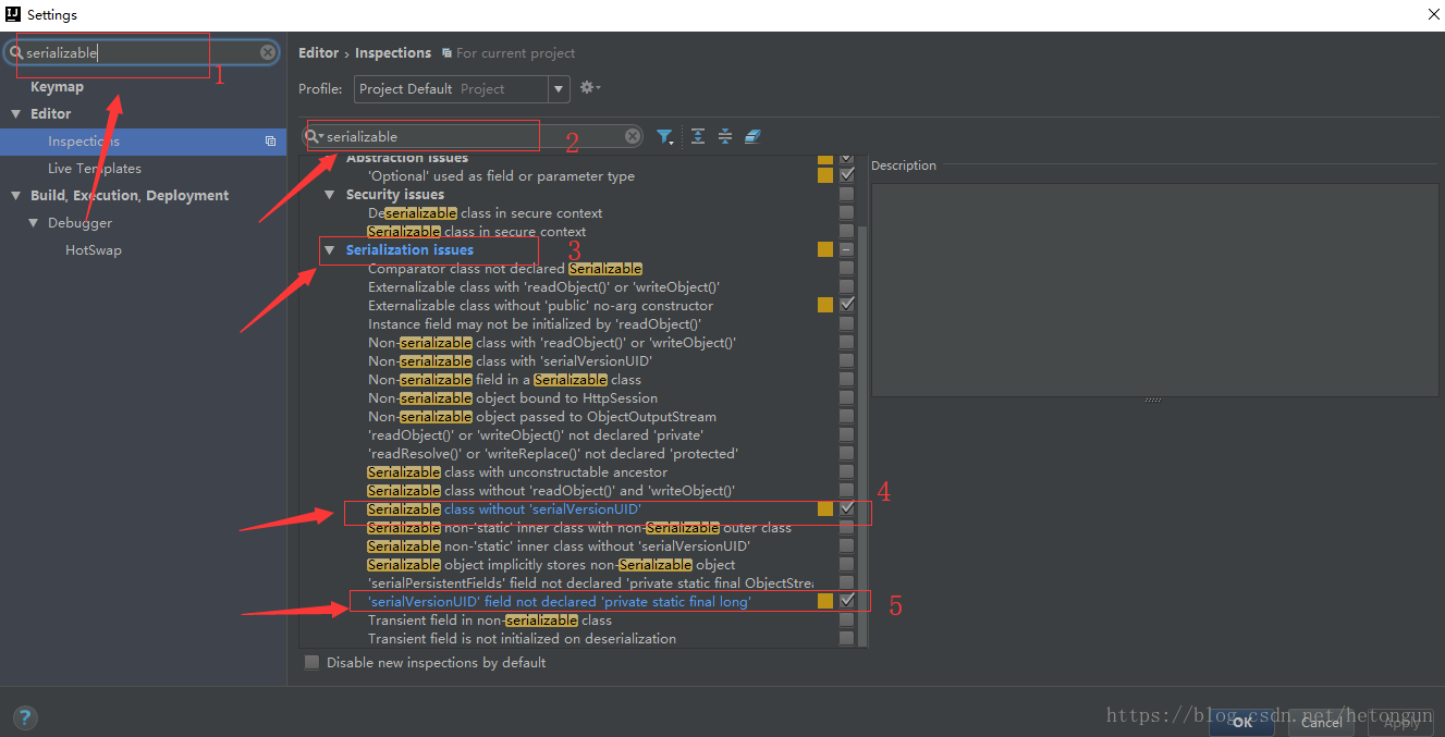 2、设置自动生成 serialVersionUID 的方式如下图所示