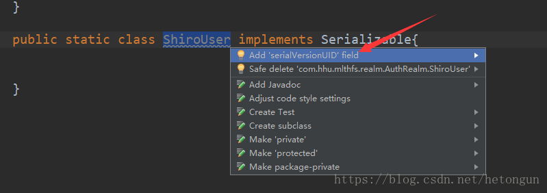 首先我们会实现接口,那么如何自动生成serialVersionUID呢。