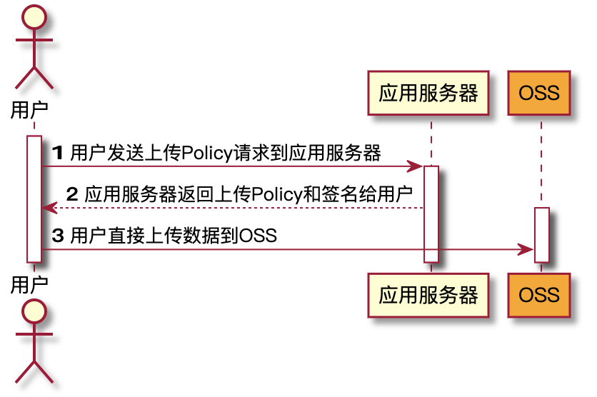 采用JavaScript客户端直接签名(参见JavaScript客户端签名直传)时,AccessKey ID和AcessKey Secret会暴露在前端页面,因此存在严重的安全隐患。因此,OSS提供了服务端签名后直传的方案。