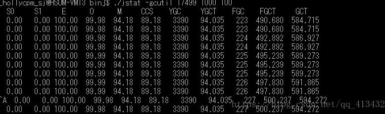 6、分析GC回收情况,在jdk bin目录下执行 ./jstat -gcutil 11042 1000 100