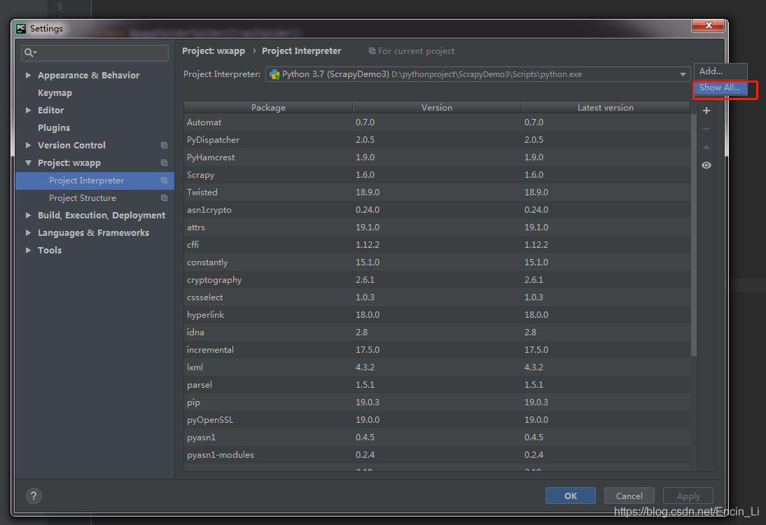 选择图中可以直接创建一个独立的 Virtualenv 运行环境,十分的方便,然后就是安装需要的第三方库,按下Ctrl+Alt+S