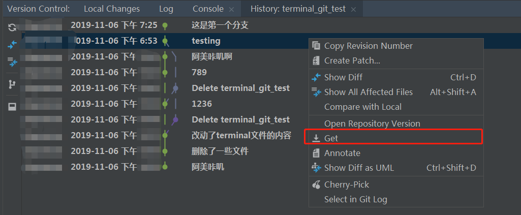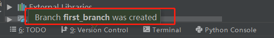 从控制台可以看到,修改已经提交到分支“first_branch”