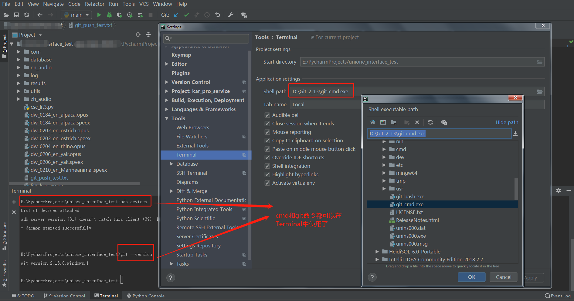 Pycharm需要先关联git,才能使用git的功能,配置如下图: