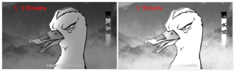 上面的代码中,给matrix参数传入了一个长度为12的元组,matrix的值改变了转换的效果,变化程度取决于传入的元组中浮点数的值。注意,有些模式是不支持的,如'RGBA',且传入的元组长度必须为4或12,否则报错。