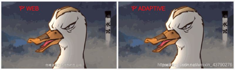 palette, 调色板,用于控制调色板的产生。从模式'RGB'转换为'P'时使用,可用的方法有'WEB'(默认)或'ADAPTIVE'。'ADAPTIVE'表示使用自适应的调色板。