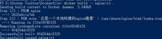 RUN echo '这是一个本地构建的nginx镜像' > /usr/share/nginx/html/index.html